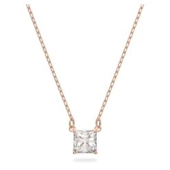 Swarovski Birthstone Pendant Square Cut, June, Pink, Rhodium Plated