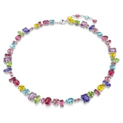 Swarovski Gema Pendant Mixed Cuts, Flower, Pink, Rhodium Plated
