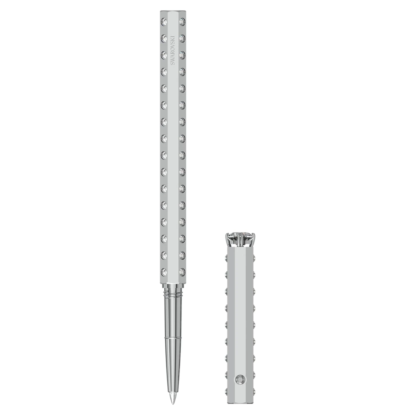 Turn writing into a work of art with this ballpoint pen. Designed to spark the imagination, it’s embellished with a dynamic mix of clear stones and flatback crystals and is debossed with the Swarovski wordmark. Finished with a sleek metal setting and a removable cap, it offers a smooth and elegant writing experience. Why not gift yourself or a loved one? This ballpoint pen is inspired by the Millenia Family.