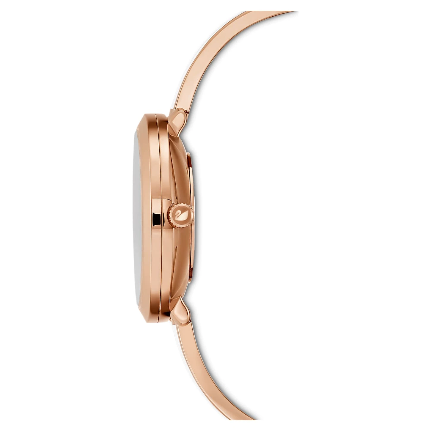 Effortlessly chic, this easy-to-wear Swarovski bangle watch is infused with iconic Crystalline sparkle. Its modern dial and elegant rose-gold tone PVD coated stainless steel case, filled with approximately 1,000 clear crystals, shimmers with fresh brilliance. The jewelry-inspired bangle, also crafted in rose-gold tone PVD coated stainless steel, is finished with a minimalist design in lustrous white enamel. A perfect accessory to style this season and beyond, the watch is made in Switzerland and water resistant to 50m. Adjustable links ensure it will fit any wrist size. Swiss Made.