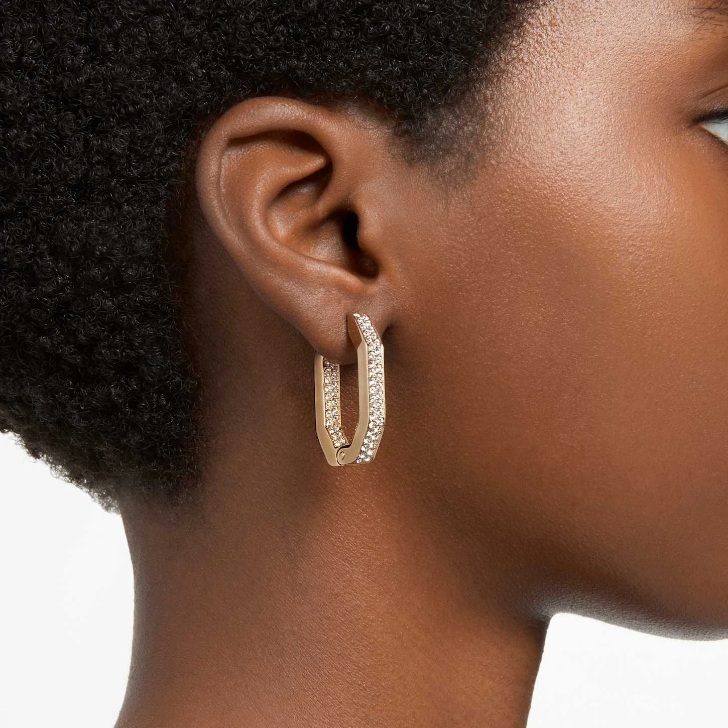 Be the first to review “Swarovski Dextera Hoop Earrings Octagon Shape, Medium, White, Gold-tone Plated” Cancel reply