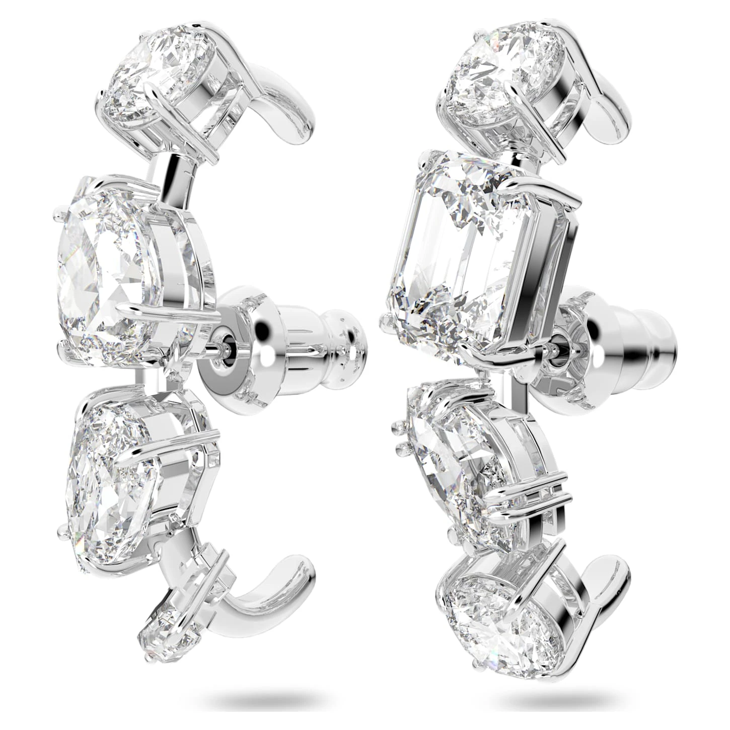 Express yourself with these eye-catching earrings from the Gema family. Made for pierced ears, this unique pair features a mix of clear crystal cuts set on rhodium plating. Wear yours solo, or stack with other unique designs from this creative collection.