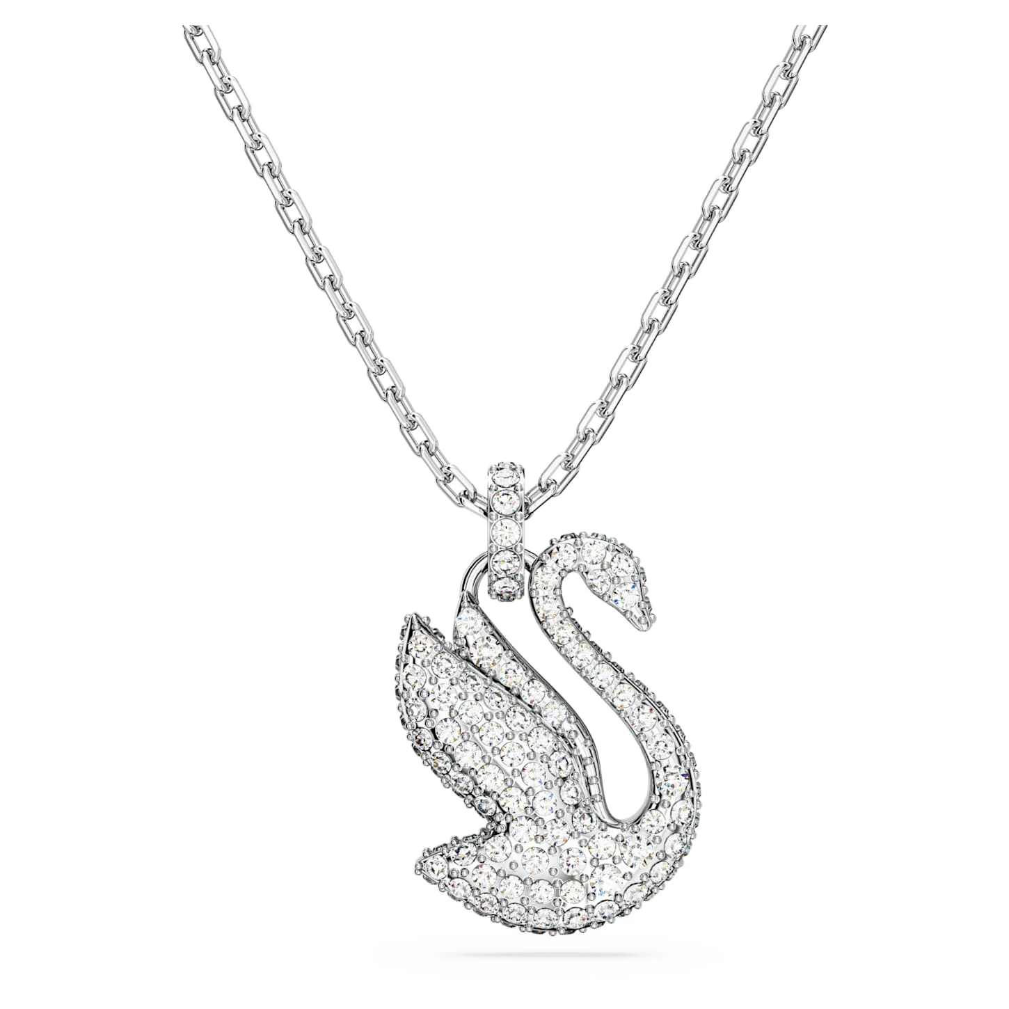 Celebrating the grace and nobility of the iconic Swarovski Swan, this delicate pendant will bring elegance to your style. Designed with wings aloft, ready to take flight, and embellished with an all-over pavé of shimmering clear crystals on shining rhodium plating, this piece will be your daily inspiration.