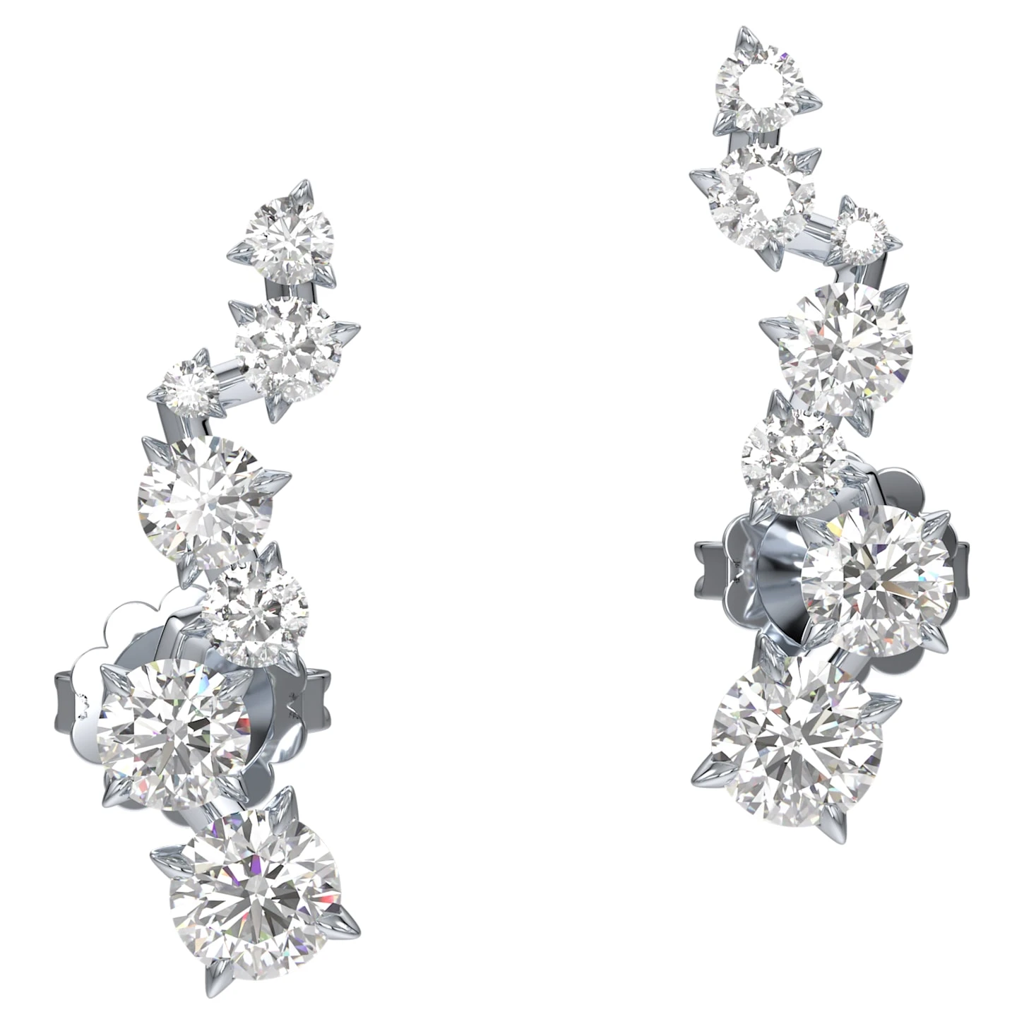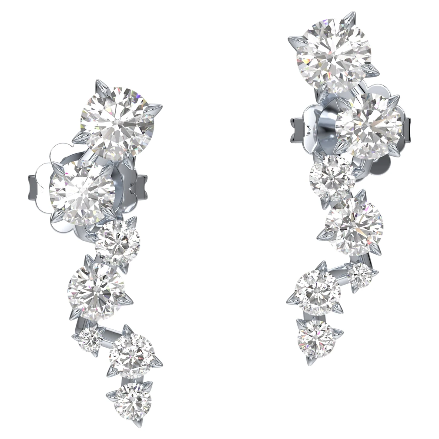 A striking statement of beauty and master craftsmanship, these Intimate earrings feature a cascade of environmentally conscious Swarovski Created Diamonds totaling 1.10 carat set on 14k white gold. Spectacular when worn alone as earrings or ear cuffs, or combined with other pieces from the Intimate family in a display of sensual wonder.