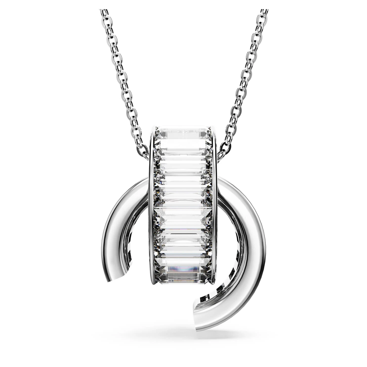 This ultramodern pendant is set to become an everyday favorite. Dazzling with clear baguette-cut crystals, it features interlocking shapes inspired by the double helix structure of DNA, and is finished with a rhodium-plated chain. Wear yours solo or layered with matching pieces from the Matrix family.