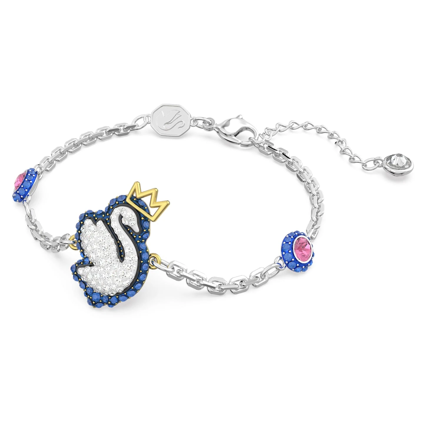There’s so much to love in this graffiti-inspired bracelet, based on the iconic Swarovski Swan. The craftsmanship begins with the swan itself, which is embellished with blue and clear crystals using our Pointiage® technique, while a gold-tone plated crown adorns the swan’s head. The swan is linked to a rhodium plated chain, which features two blue and pink stones. Looking like a freshly sprayed design, you can wear this bracelet to showcase an alternative edge to your style.