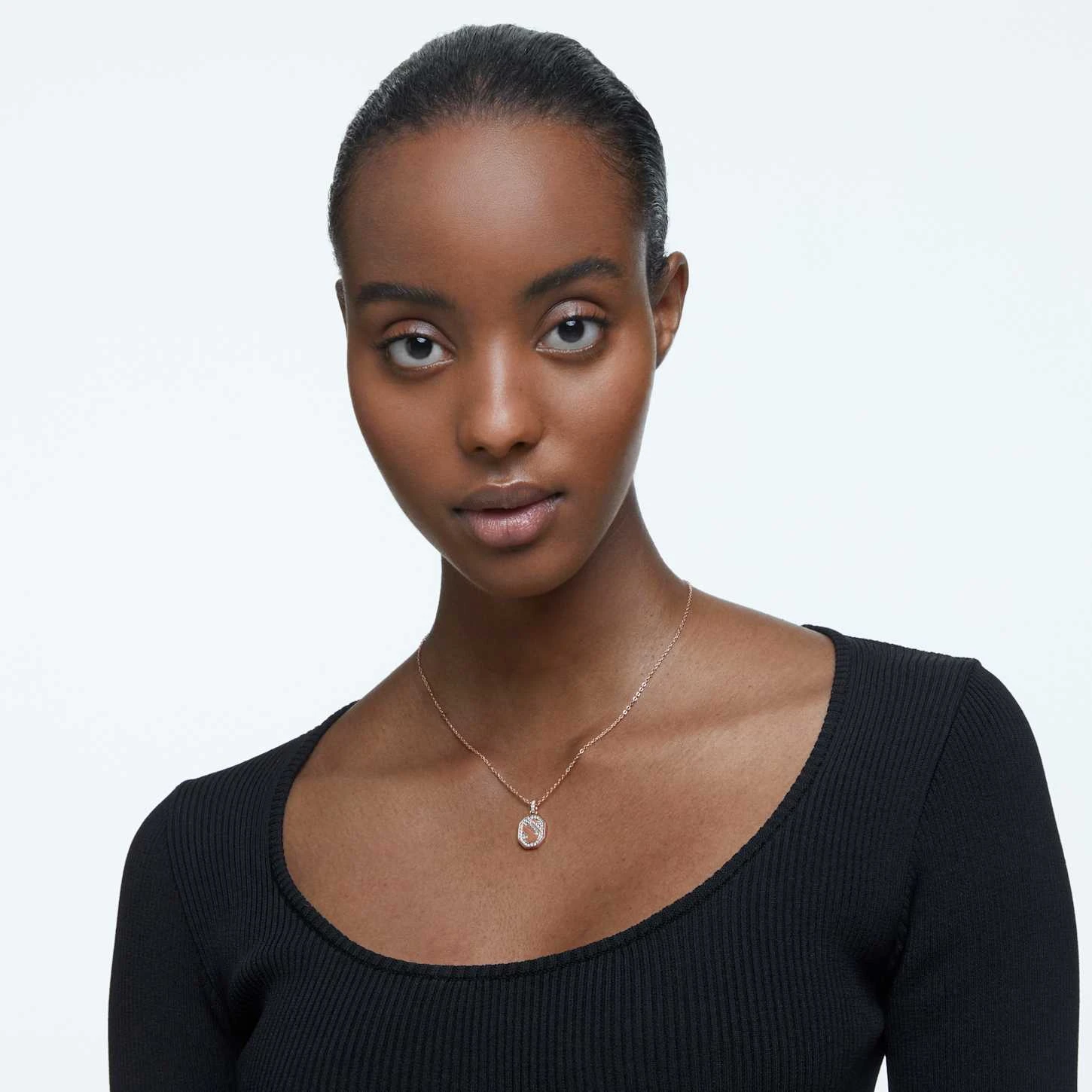 The treasured Swarovski swan meets the iconic octagon symbol in this delicate rose gold-tone pendant. A playful and contemporary take on two iconic emblems, the centerpiece features dazzling clear crystals and is suspended on a fine chain. Style yours alone, or with the matching earrings and bracelet from the Signum family. This pendant is part of the Signum family, designed by Creative Director Giovanna Engelbert for Collection II.