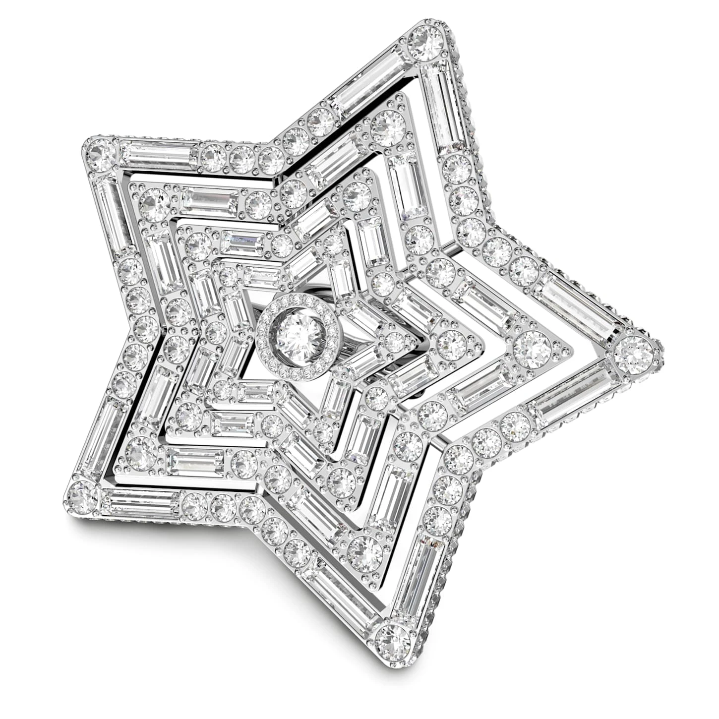 Bring the wonder of the night sky to your everyday repertoire with this beautiful oversized cocktail ring. Emulating Swarovski’s iconic star motif, it features a dynamic mix of clear crystals cradled in rhodium plated prong settings, complete with an innovative dancing stone mechanism at its center. Style it as a solo piece with everything from denim to eveningwear. This ring is part of the Stella family, designed by Creative Director Giovanna Engelbert for Collection II.
