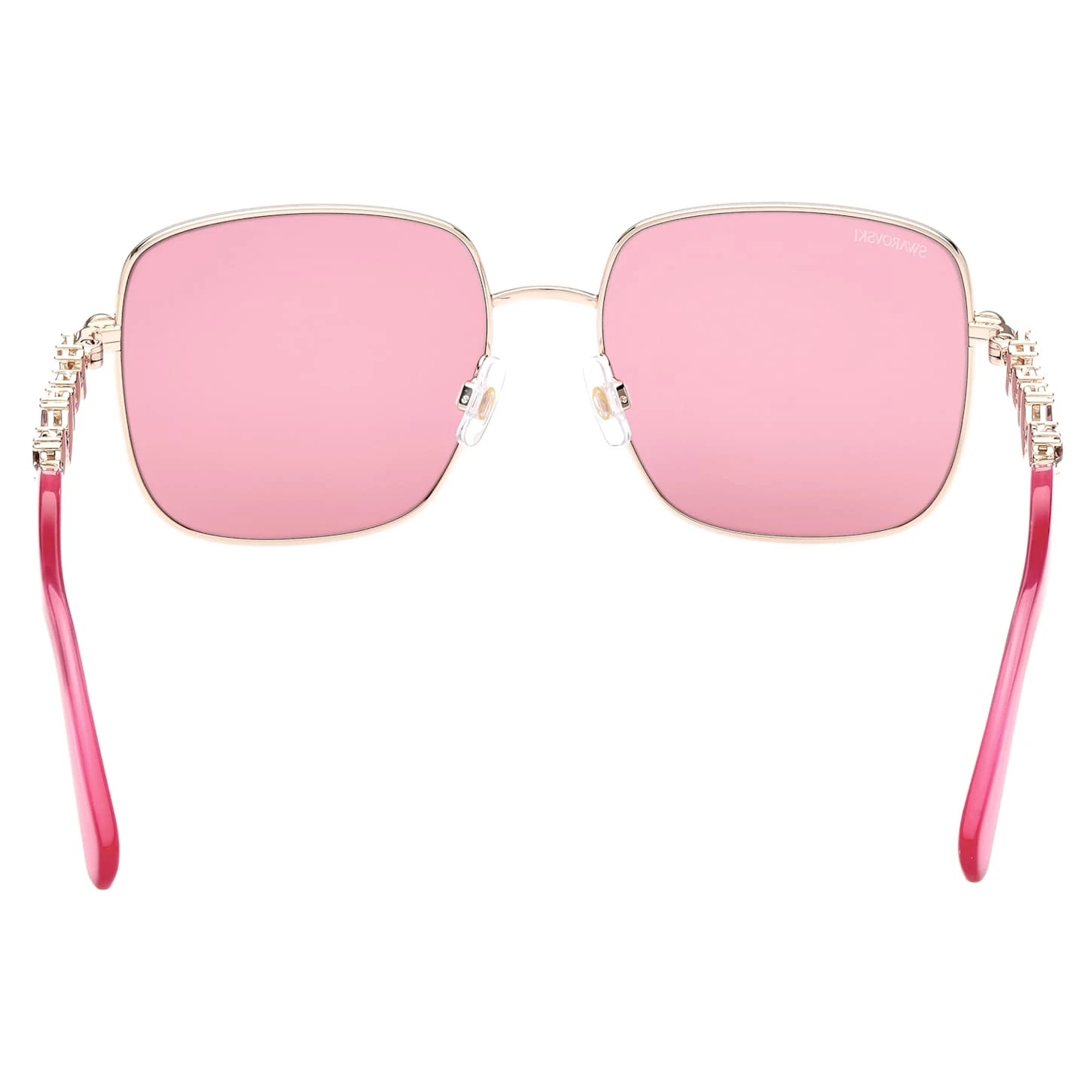 Make a bold statement with these playful square sunglasses. Showcasing a dynamic mix of tonal pink and amethyst crystals in different cuts, this beautiful design features a gold-tone plated frame and solid pink temple tips for a classic yet contemporary finish. These sunglasses are inspired by the Gema Family.