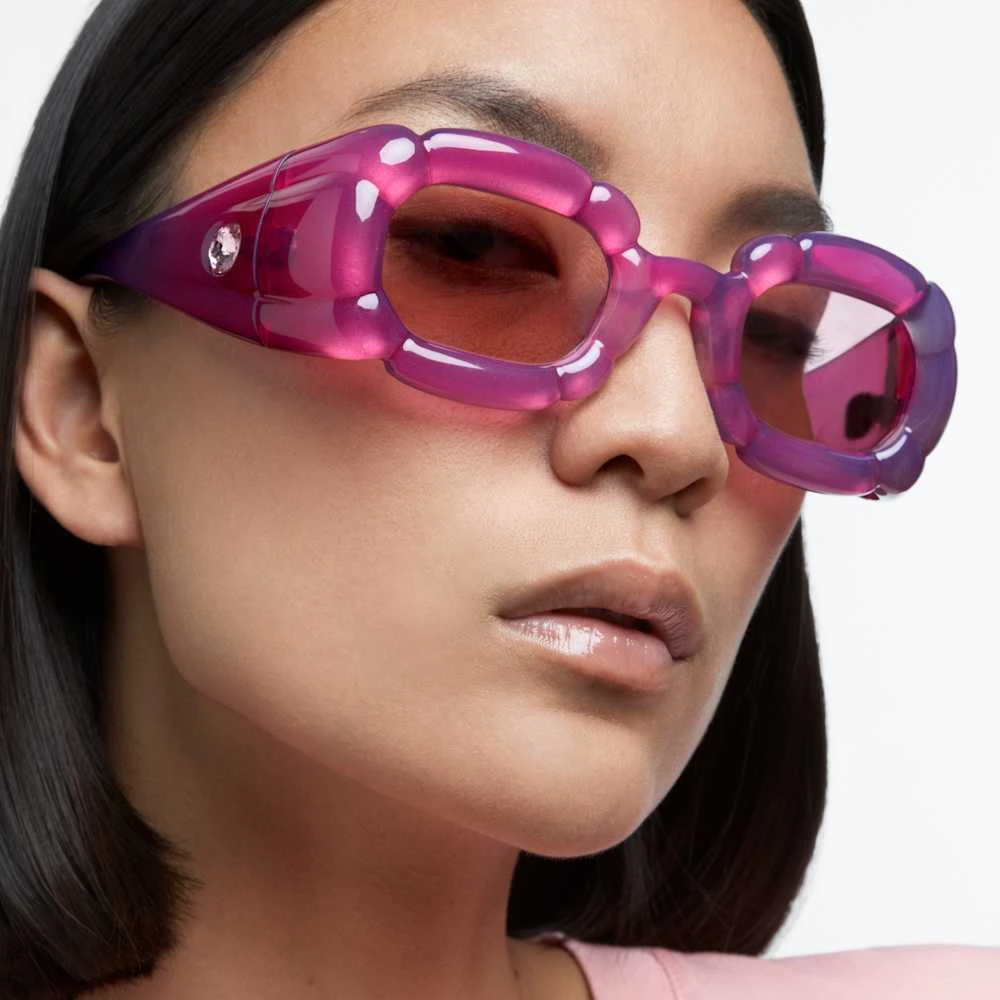 Playfully soft in form, these statement sunglasses add a bold twist to any look. With candy-box pink lenses and frames, they’re finished with oversized temples discreetly displaying the Swarovski logo. Either worn in the daytime with a simple white T-shirt and jeans, or for the evening with dresses or suiting, you’ll turn heads wherever you go.