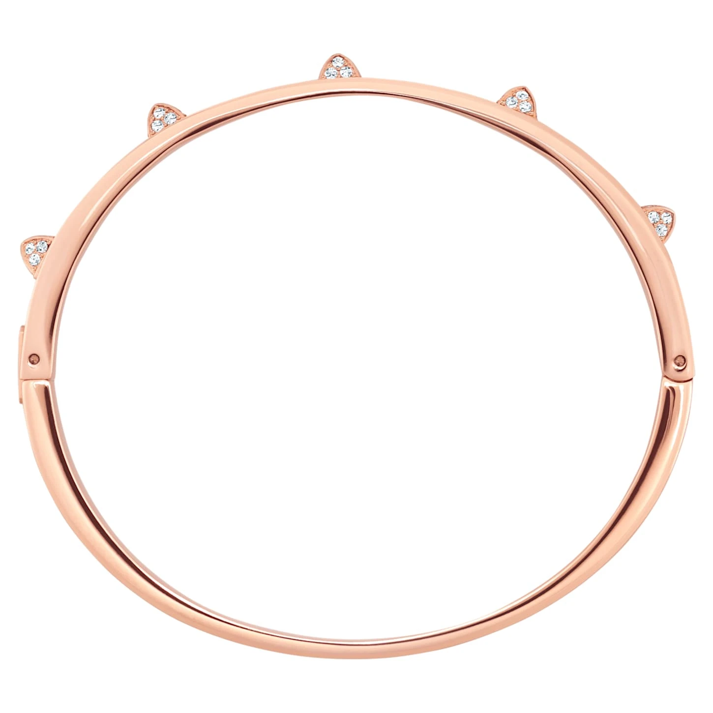 Ideal for fashion lovers! This rose gold PVD bangle honors the thin bangle and spike trends. Embellished with clear crystal pavé, its sleek and modern silhouette combines well with other bangles or bracelets to create an on-trend stacked look.