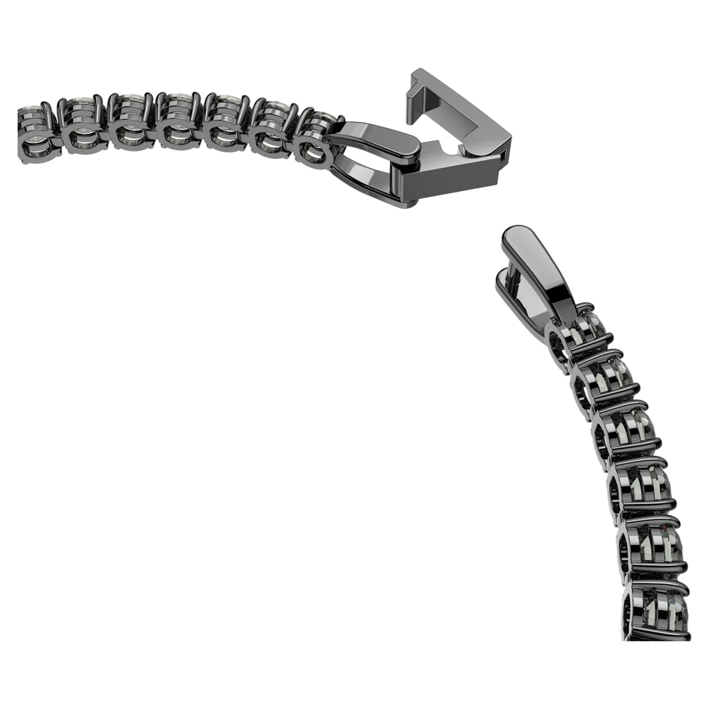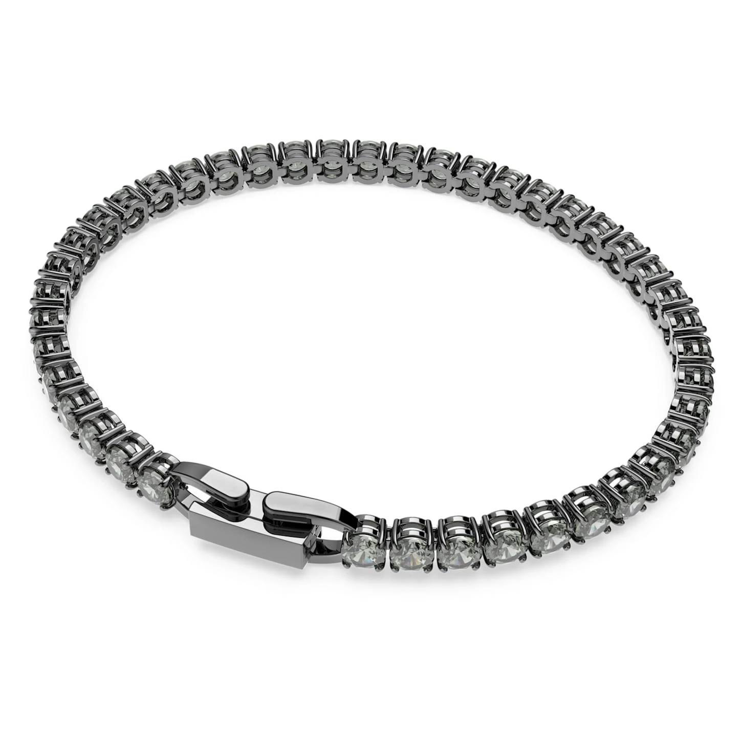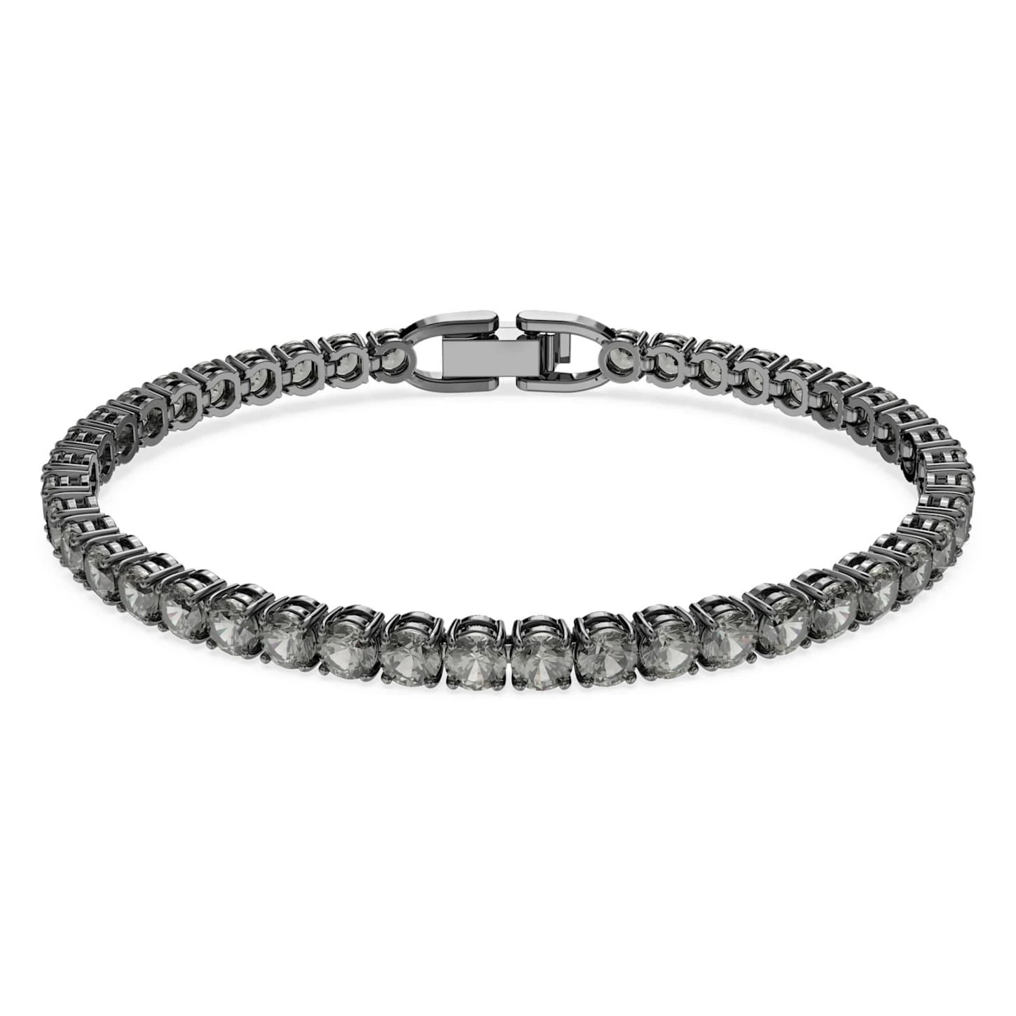 Full of subtle sparkle and contemporary edge, this classic unisex ruthenium plated Tennis Bracelet will enhance any outfit. It features a strand of prong-set round crystals in a dark color. An elegant and minimalistic must-have for everyday wear.