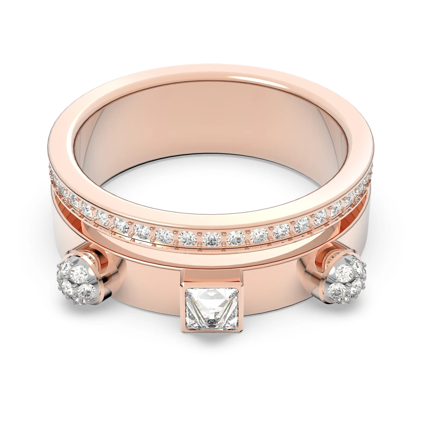 Inject some rock ‘n’ roll style with this edgy ring. Featuring a double-band design with sleek pavé and crystal studs on a rose gold-tone plated setting, it is your accessory of choice for off-duty denim or leather days.