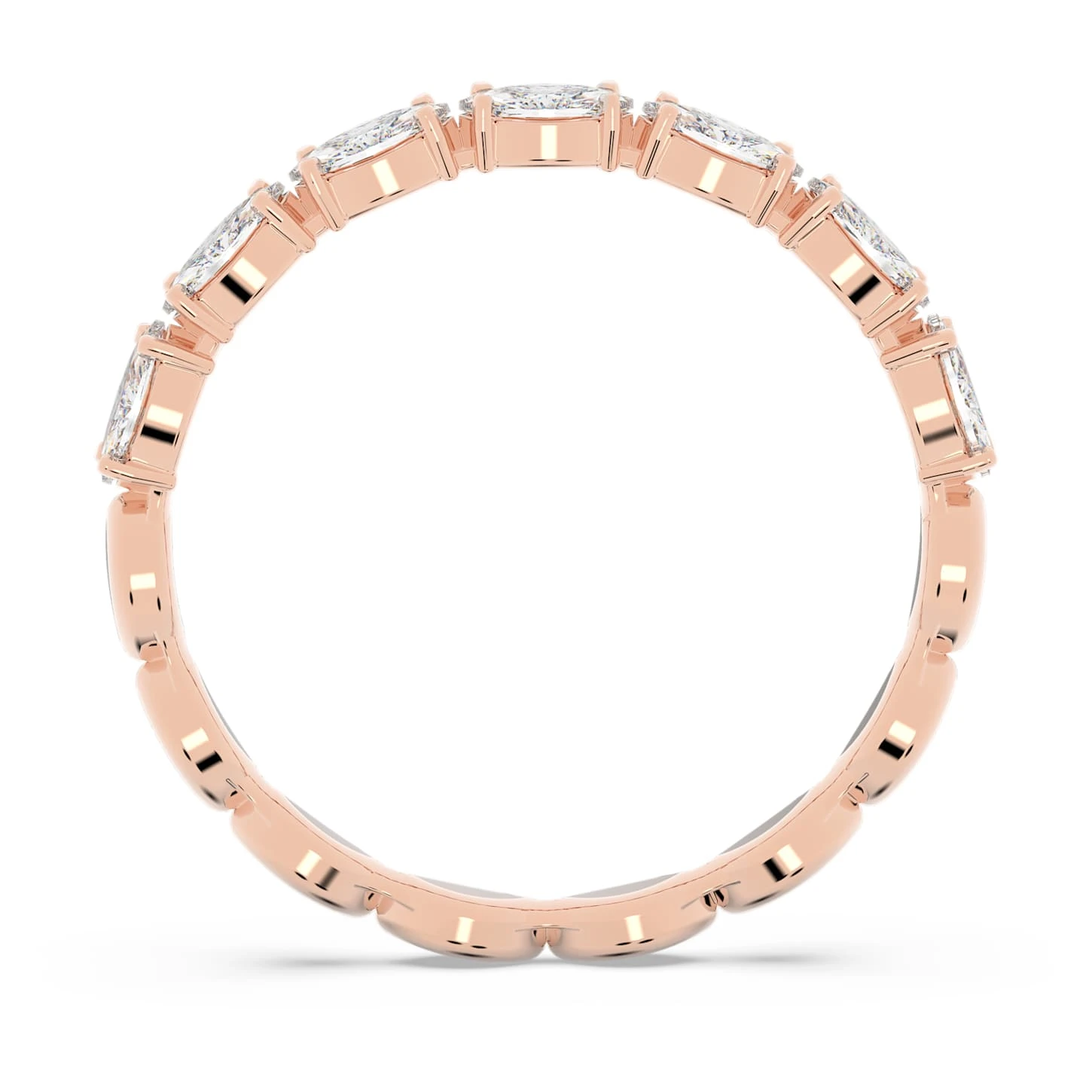 Add a note of minimalist luxury to your look with this gorgeous ring. The front half is embellished with sparkling marquise-shaped stones, making this rose gold-plated accessory is a lovely accent for everyday looks. Stacks beautifully or looks equally good worn alone.